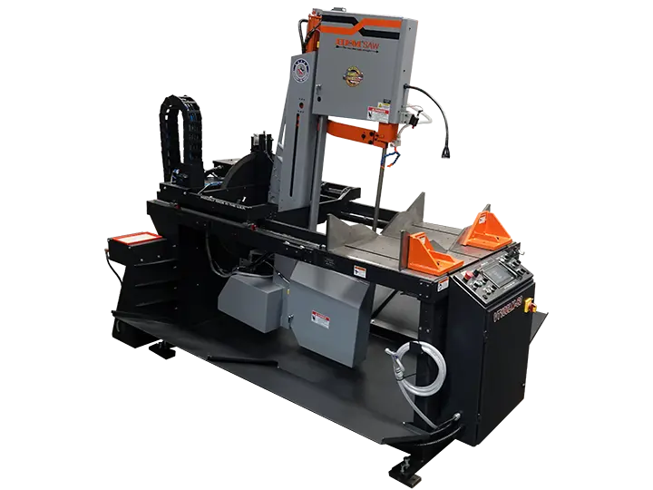 The VT100LM-60 will miter up to 60ᵒ in both directions. A self-contained hydraulic system powers the full stroking vise, arm tilt, and guide arm. Functions are operated from a touch screen control and the saw can be operated in manual or semi-automatic modes. Various options are available.
