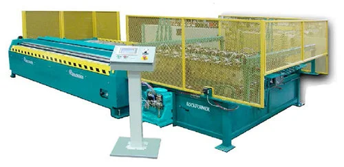 Save time and money by rolling your own pipe. Iowa Precision’s advanced system produces oval or 3" to 14" diameter round pipe from 2’ to 10’ in length out of 24 to 30 gauge galvanized steel with the turn of a dial. Just feed blank material into the 9-station duplex rollforming machine where male and female configurations are formed.