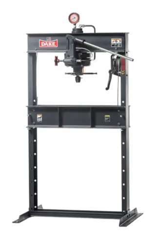 The 25H hand operated hydraulic press offers 25 tons of pressing power. It features 5 3/16 inches between the table channels, 39 inch maximum ram to table, and is 76 inches tall.