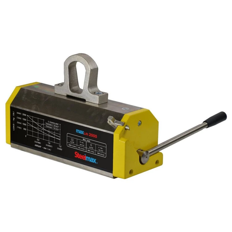The Steelmax lifting magnets (Max Lifter series) are compact, self-contained lifting magnets using permanent magnets to maintain holding power indefinitely. Because they require no electric power, they can be used where electric power is not readily available and free of the restriction of power cords.