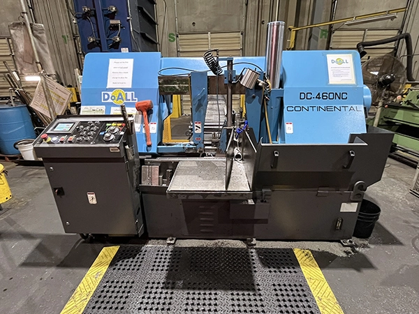 Used DOALL DC-460NC Dual Column Horizontal bandsaw with 18” x 18” Capacity, 1-1/2” Blade, PLC Control, Automatic Barfeed, 10 HP Motor, Year 2018