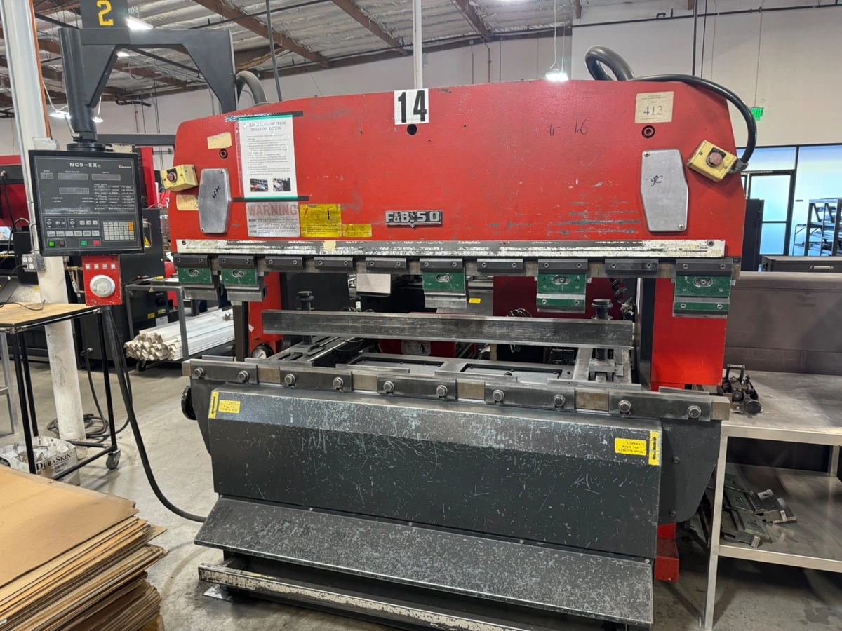 Amada RG-50 55 Ton X 82” Hydraulic 3-Axis CNC Press Brake with NC-9EXII Controller (3 AXIS), Backgauge, Full Length Foot Treadle, Flush Floor Design, Finger Assemblies, Remote Hand Wheel