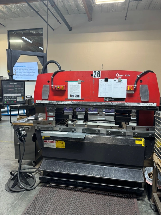 Amada RG-50 55 Ton X 82” Hydraulic 3 Axis CNC Press Brake with NC-9EXII Controller (3 AXIS), Backgauge, Full Length Foot Treadle, Flush Floor Design, Finger Assemblies, Remote Hand Wheel